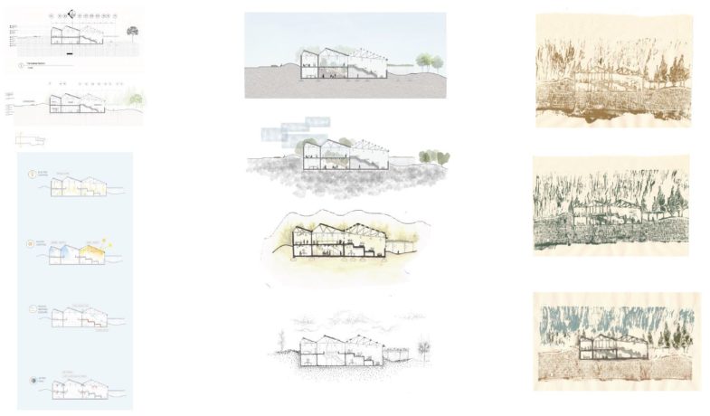 Range responds to the noted observations by creating a method to learn new drawing and representation techniques. This exercise requires creating multiple iterations of the same section of a building, with each version exploring a different representational style. The section drawing is chosen as the basis for the exercise because it provides opportunities for experimentation but still maintains the constraints of architectural conventions. Convention is maintained at the cut line, while the rest of the objects in elevation and the entourage may be rendered in different ways. This exercise is intended as a guide for new students in architecture to use as a reference for understanding the range of possibilities of representation.